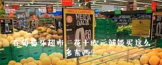 在葡萄牙的超市里,花费不到10欧元就可以买到一大堆东西。