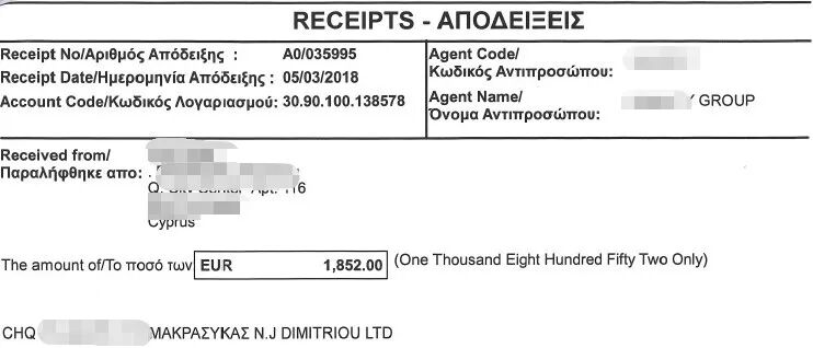 很多投资者看完后表示: 虽然对塞浦路斯房产的持有成本已经有所了解,但是,这么多要交的钱,我该什么时候交?怎么交? 别着急,邦尼今天手把手来教你,如何来缴纳塞浦路斯房产的持有成本费用~ 房屋保险费 房屋保险有效期一般为期一年,从业主首次购买的日期开始,按照顺延年计算。 如业主的保险合同是在2017年6月6日生效,则2018年6月5日保险到期。 首次签署合同时,会有一个是否到期自动续约的选项,如业主选择了自动续约,则保险生效期限每年自动延长一年,取消保险需要提前通知保险公司。 一般在塞浦路斯的业主是可以请房产开发商帮忙交纳的,业主汇款给开发商即可。或者客户按照保险文件上的银行账号汇款给保险公司,并邮件联系保险公司确认到账情况、索要收据。 收据一般长这样? 花园泳池维护费(物业费) 该笔费用一般都是在业主收房时缴纳一年的,到期以后再续交,交纳方法和保险的一样哦,如果取消维修费用,也需要提前告知开发商或者海外维护公司。 公共区域管理费(物业费) 物业费约为几十欧至一两百欧/月。 通常按季度支付,或者每半年或一年支付一次。 业主通常会请律师帮忙与物业公司沟通,业主需要签署一份授权文件发送给律师,写明业主、律师身份信息、银行账户信息、交纳费用项目以及金额,律师收到文件后会联系银行,从业主的银行账户中转出相应金额给物业公司。 律师协助支付物业费会收取一定的支付费用,一般是50-100欧元不等,需要另加19%VAT增值税。 常规的授权模板如下? INSTRUCTIONS ====================== I, the undersigned XXX with Chinese Passport…XXXXX hereby authorize my Lawyer XXXX with ID card XXX as per the Mandate/ POA given to him to withdraw the amount of EURO XXX from my personal account that I hold with XXXX Bank and transfer it an account of XXX as payment for the COMMON EXPENSES to the Board. I also authorize my Lawyer XXXX to withdraw EURO 50 plus VAT as payment for the Legal Fees for paying my COMMON EXPENSES. The undersigned, 水电费 水电费可以通过直接借记扣除,但是需要投资人注意保持塞账户余额充足(大约二三百欧)。如余额不足扣款失败,会导致直接借记被禁用,需要再次开通,律师是可以协助开通直接借记的,需要收取服务费用50-150欧元不等,另加19%VAT增值税。 如果业主不愿意开通直接借记,也可以在收到水电账单后,携带账单直接去水电局现场交纳。 同样也可以请律师代为交纳,需要签署授权并交纳服务费用50-150欧元不等,另加19%VAT增值税。 市政税收 最常见的缴纳方法就是请律师代办了,和其他项目交纳的流程一样。 业主也可以入境直接去税务局交纳,交纳时需要携带有效的身份证件和房产证件。 也有开发商帮业主交纳的情况,这就要看你的开发商是否足够贴心了~